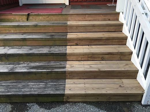 - 建物をキズつけたり塗装を変色させたり、木材をいためることなく復元させます。